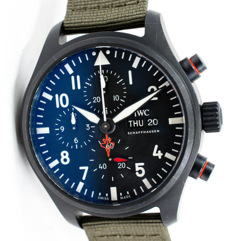 Previously owned IWC Pilot Top Gun Rattrapante Chronograph gent’s watch, Model # IIW389104.