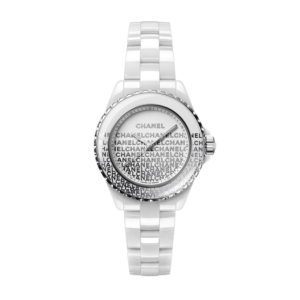 Ceramic round shape 33mm case. White-lacquered dial with polished rhodium-plated CHANEL inscriptions. Luminescent hour, minute and second hands. Ceramic bezel. Battery operated quartz movement. White ceramic bracelet with hidden stainless steel deploy buckle.