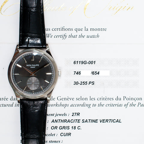 Patek Philippe Calatrava Clou De Paris 39mm 18k White Gold 6119G-001 Watch.