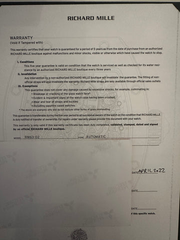 Richard Mille RM63-02 Titanium Men's Watch