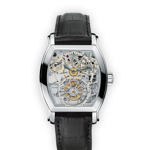 Platinum 36mm case with platinum crown. Platinum bezel. Skeleton dial with platinum index hour markers and hands. Hours, minutes, seconds, power reserve indicator, date and tourbillon. Manual wind movement, Caliber 1790 SQ. Crocodile leather strap with platinum buckle. Power reserve up to 45 hours. Water resistant up to 30m or 100ft.