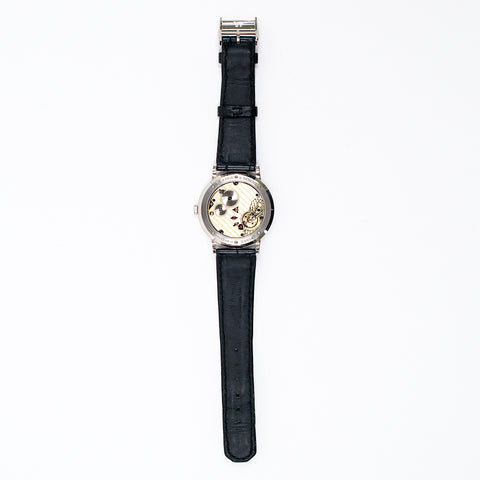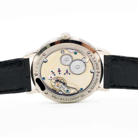 18kt white gold 37mm case with 18k white gold crown. 18k white gold bezel. Silver colored dial with index hour markers. Hours and minutes. Manual winding movement, Caliber L093.1. Crocodile leather strap with 18k white gold pin buckle. Power reserve up to 72 hours. Water resistant up to 30m or 100ft.